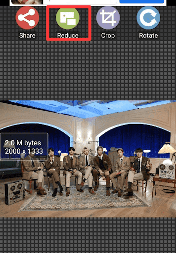 - Pilih foto yang ingin dikecilkan ukurannya > klik menu Reduce pada bagian atas dan pilih level ukuran yang tersedia.
