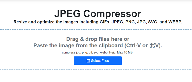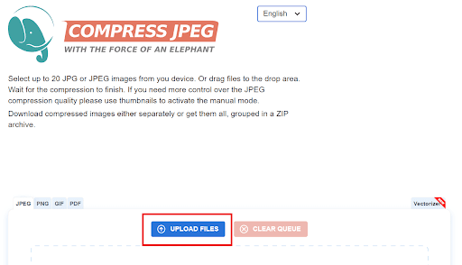 - Klik menu Select files dan pilih foto mana yang ingin Anda kecilkan ukurannya.