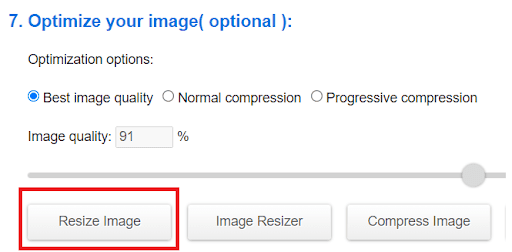 - Jika sudah, Anda bisa menuju ke bagian bawah halaman tersebut > klik tombol Resize Image > tunggu beberapa saat sampai proses selesai.