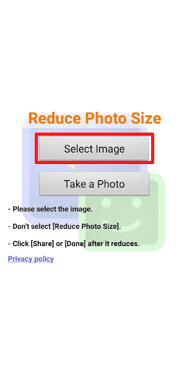 - Langkah selanjutnya, buka aplikasi Reduce Photo Size > klik menu Select Image pada tampilan awal.