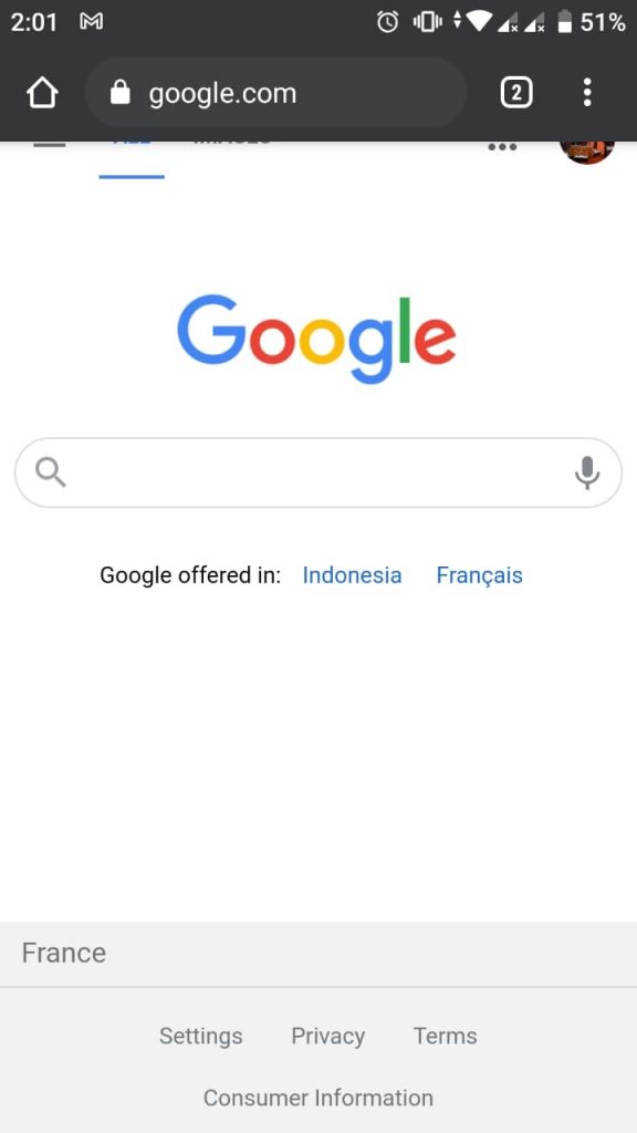 Terlihat bahwa pencarian di Google.com telah terdeteksi dengan negara France, artinya setting proxy anda telah berhasil. Sampai tahap ini, setting proxy di Android telah selesai.