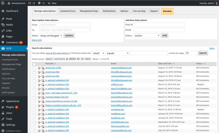 Plugin ini juga mengumpulkan semua email dari orang-orang yang berlangganan komentar dan memberi Anda kontrol penuh atas email-email itu. Ini berarti Anda dapat dengan mudah menyalin email ke daftar email Anda sendiri juga.