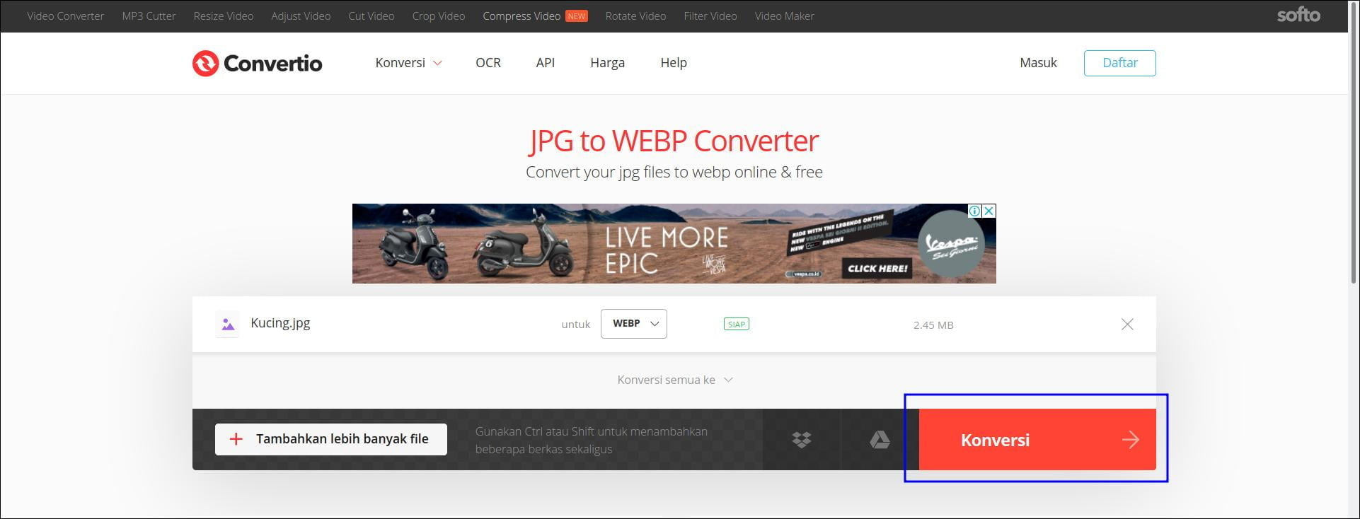 Ada beberapa cara untuk melakukan konversi format JPG to WebP. Kali ini kami menggunakan cara yang paling mudah dan bisa dilakukan di semua perangkat, yaitu dengan menggunakan aplikasi konverter gambar online.