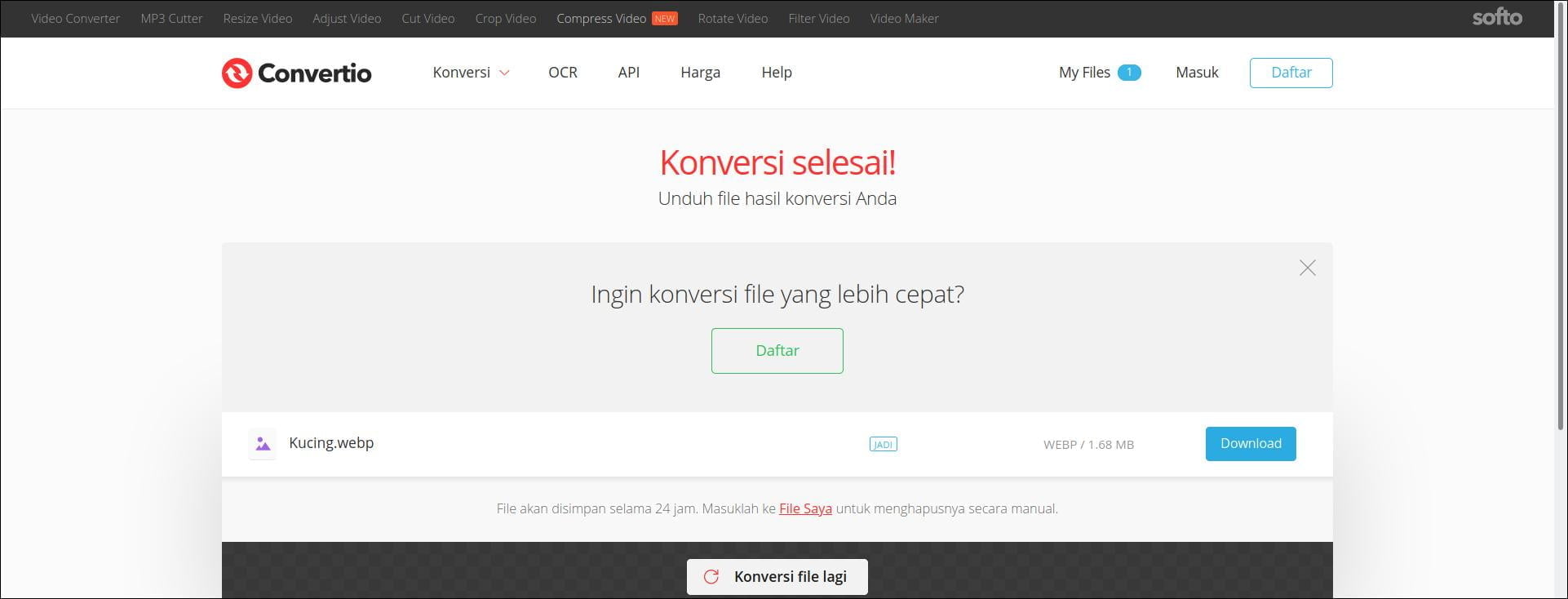4. Setelah proses konversi selesai, klik tombol Download untuk mengunduh file berformat WebP hasil konversi.