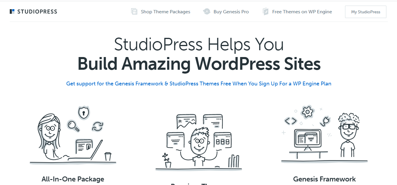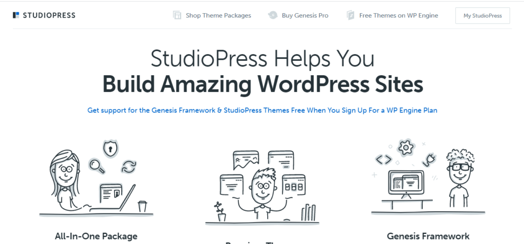 StudioPress menggabungkan SEO, desain yang indah, kinerja yang handal serta keamanan untuk membuat website profesional. Banyak fitur tema yang disediakan oleh StudioPress. Menciptakan waktu muat halaman website yang cepat serta keamanan menjadi prioritas pengembangan tema tersebut.